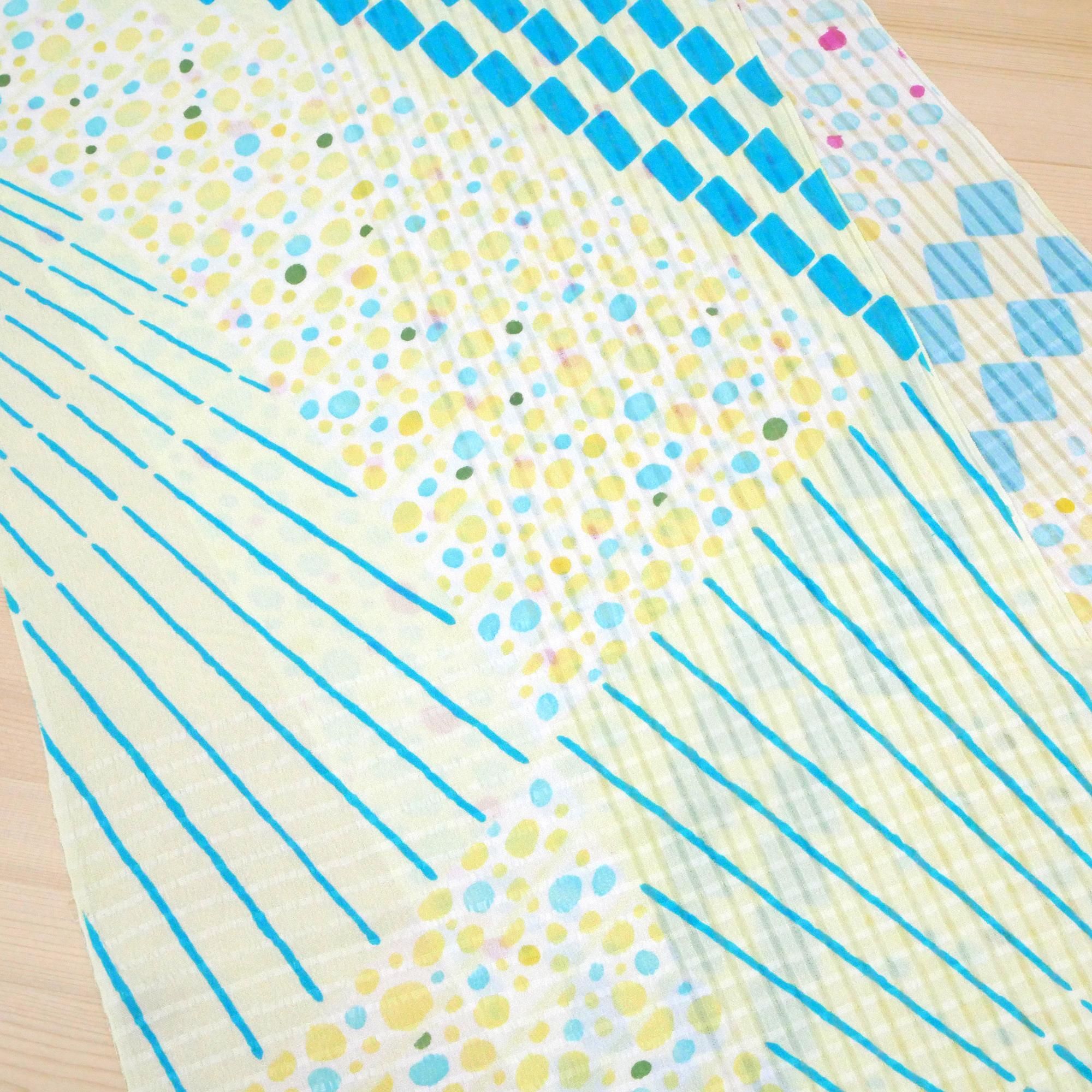 黒・黄・グレーの3色展開でご用意しました。鮮やかで遊び心がある色味ですが、どこか涼しげで落ち着いた表情を持つこの帯揚げ。ポップで可愛らしい雰囲気を楽しみながらも、全体の印象を邪魔せず、柔らかに馴染んでくれます。