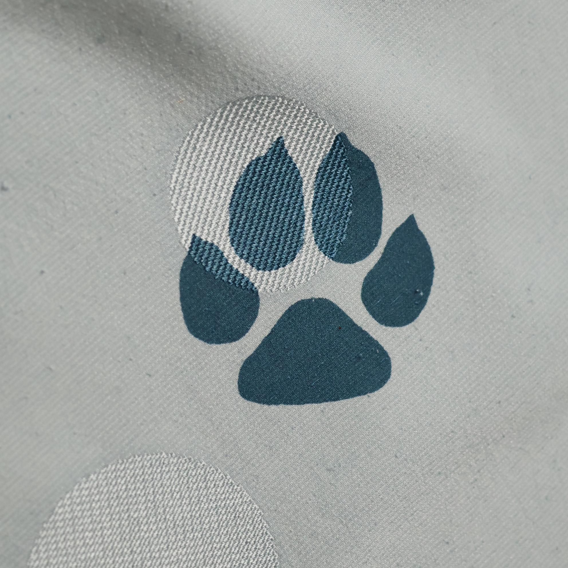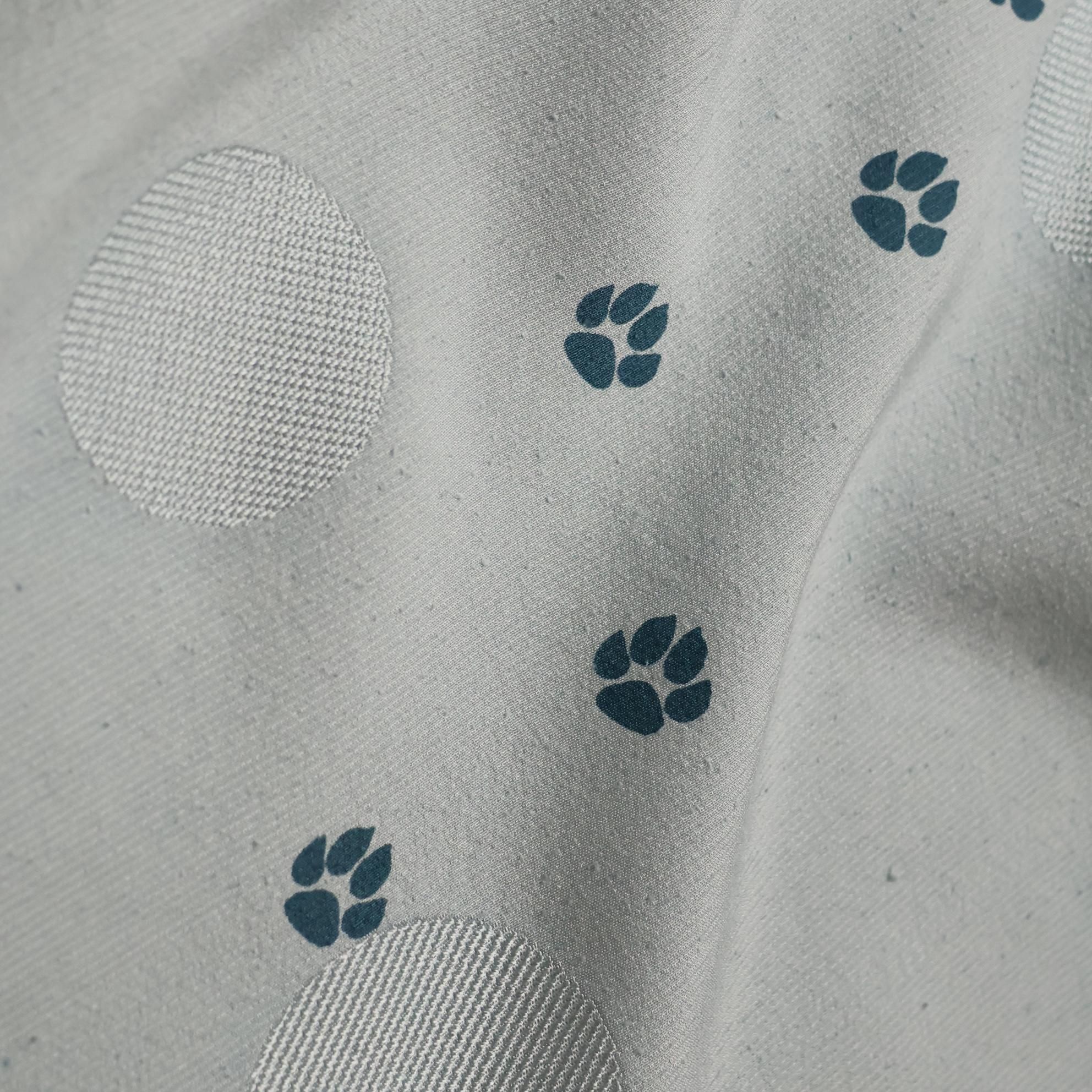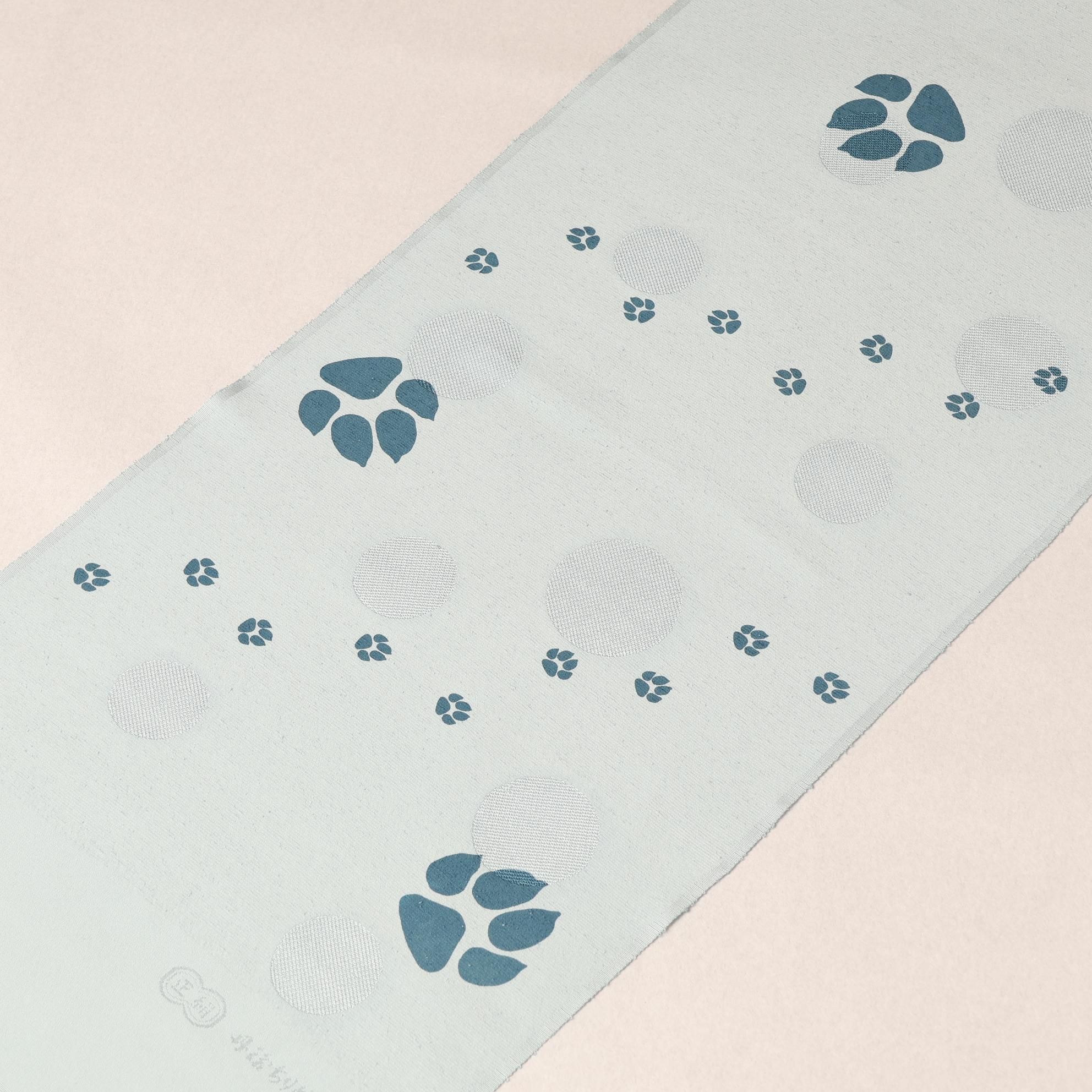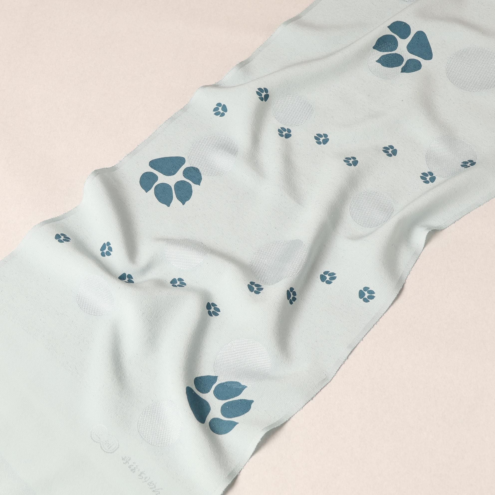 肉球に染料をつけた「なにか」が、まだ乾いていない生地の上を歩いてしまったかのような。。。