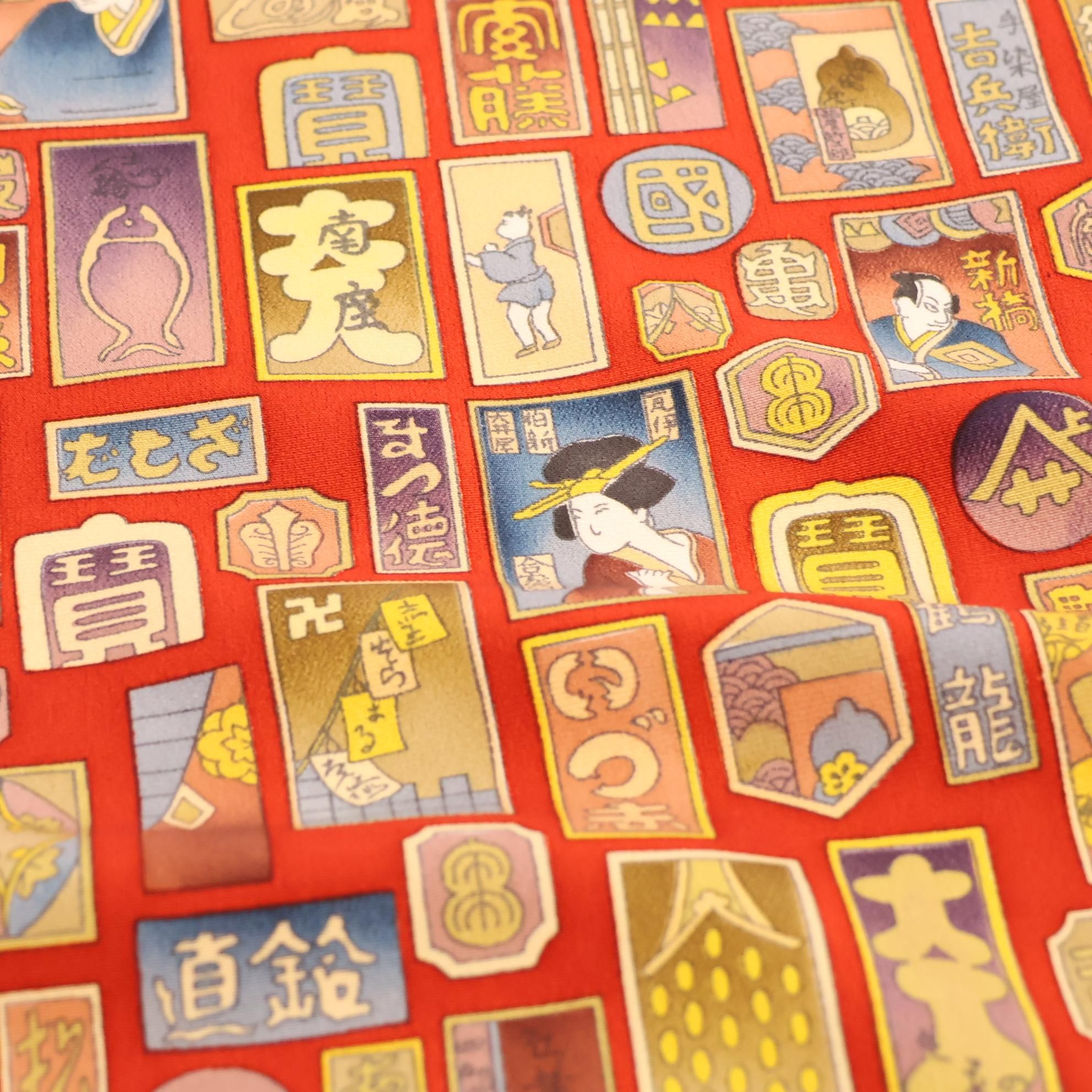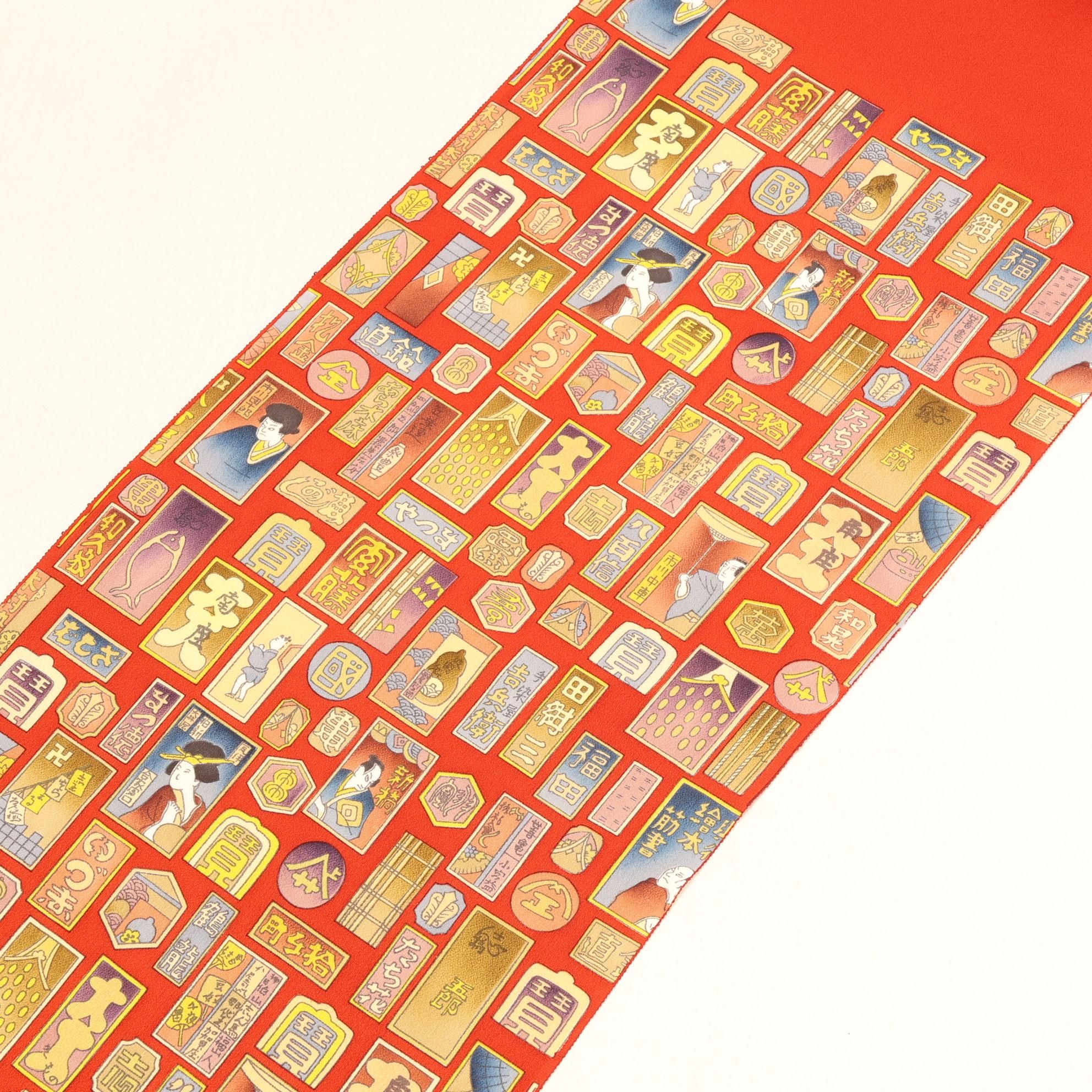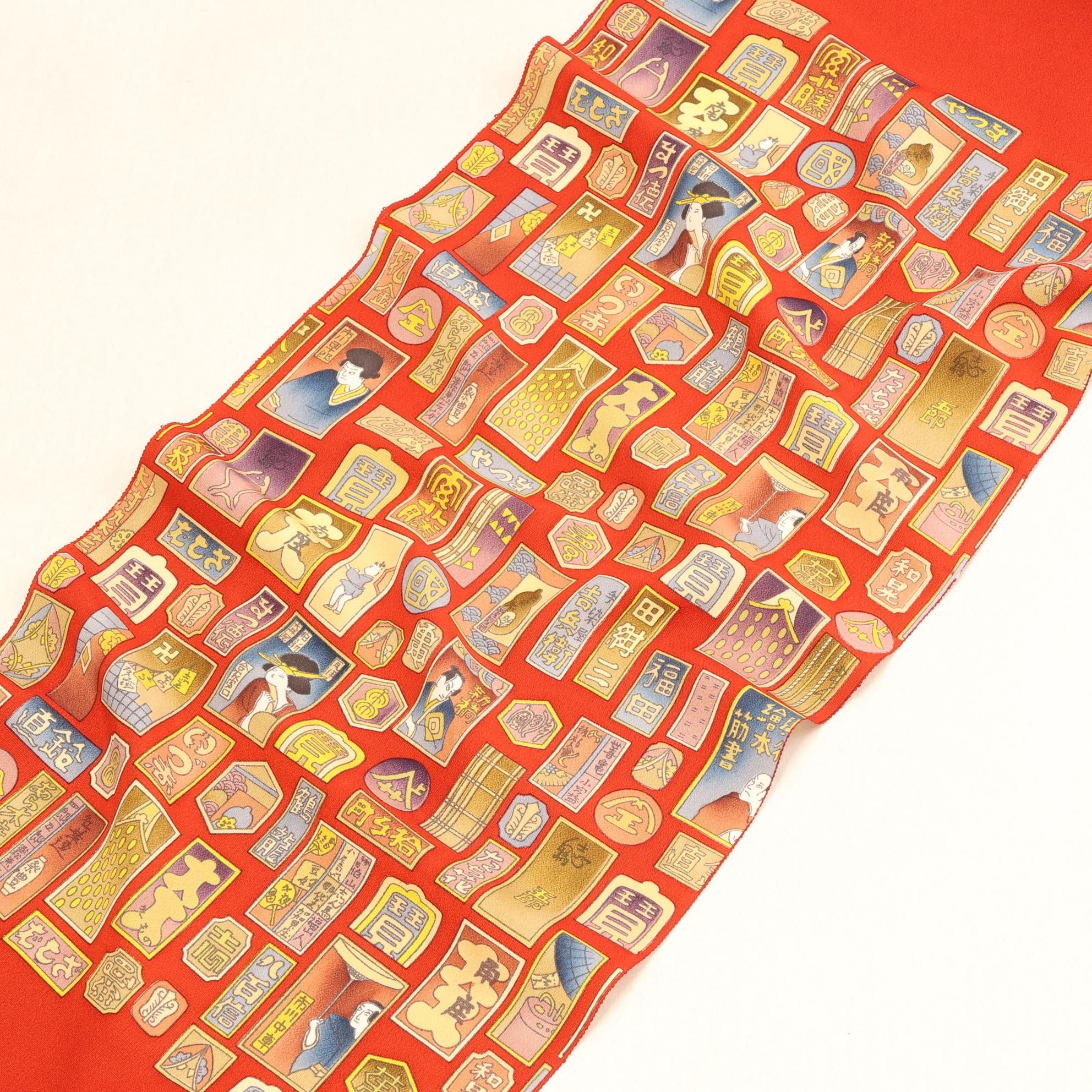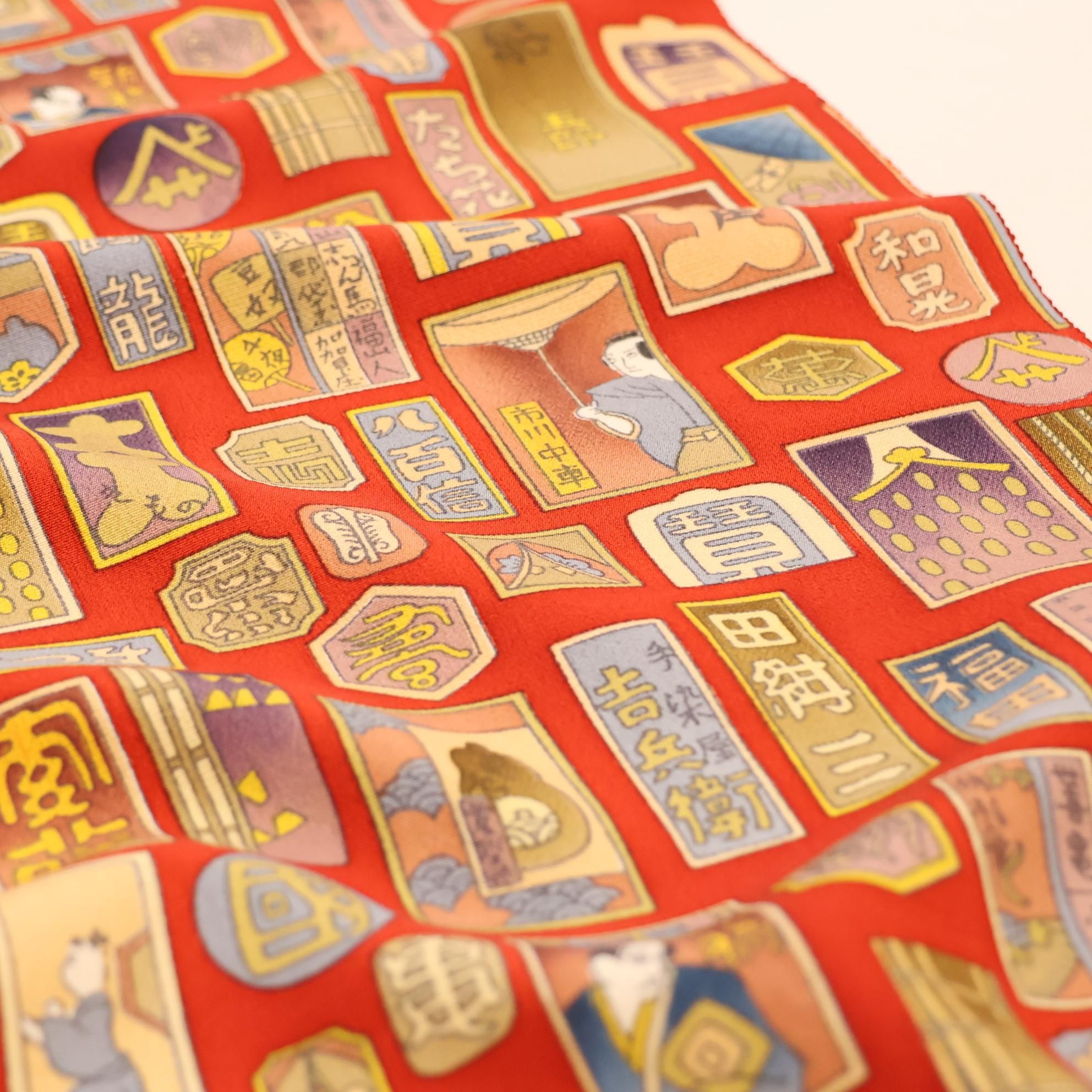帯揚げといえども、決して手を抜くことなく、千社札の中身のぼかしや繊細な描写まで妥協なく再現しています。「小物だからこそ、一流の技を」という職人たちの強い想いが宿り、上質な和装を求める方々に相応しい仕上がりとなっています。持つ人に特別な気持ちを届ける、まさに珠玉の一枚です。